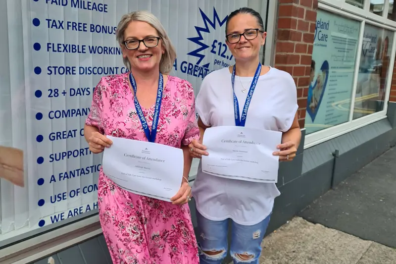 - National Care Awards Success Lakeland Care is proud to be nationally recognised for excellence in care. At the National Care Awards 2025, our very own Ashleigh was crowned Domiciliary Carer of the Year, and Joy was celebrated as a Finalist for the prestigious Sara Berrio Champion Award. This recognition highlights the compassion, professionalism, and dedication our carers bring to every visit — ensuring the people we support feel safe, valued, and truly cared for. Lakeland Care — trusted locally, recognised nationally.