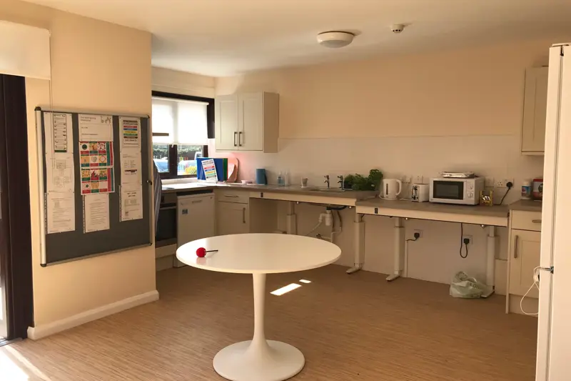 Communal lounge, kitchen, dining room and sensory room