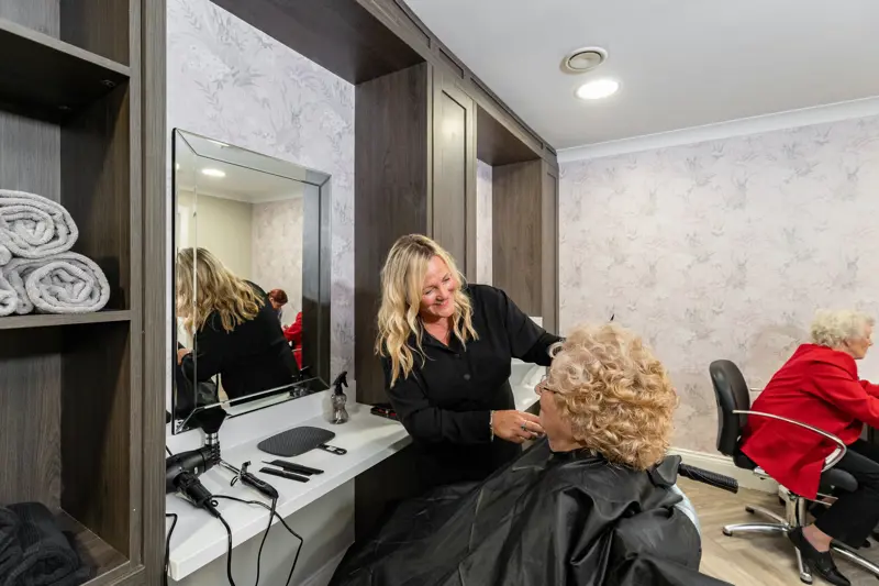 Our Lindsey Hall luxury care home includes facilities such as an in-house bar, restaurant standard dining rooms, a full beauty and hairdressing salon, a reminiscence street scene promenade with shop fronts, an indoor bowling green, and a cinema. The home offers beautifully landscaped gardens with private seating areas for our residents and their visitors to enjoy.