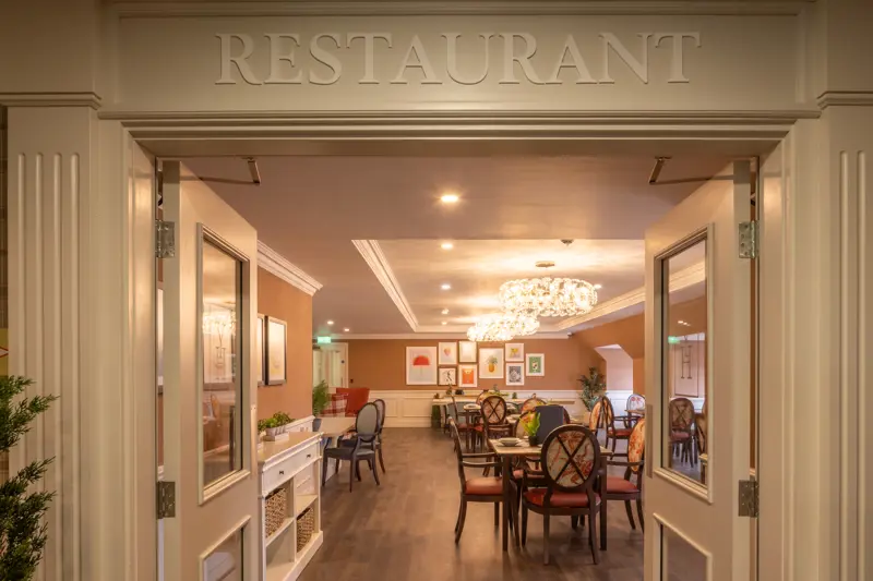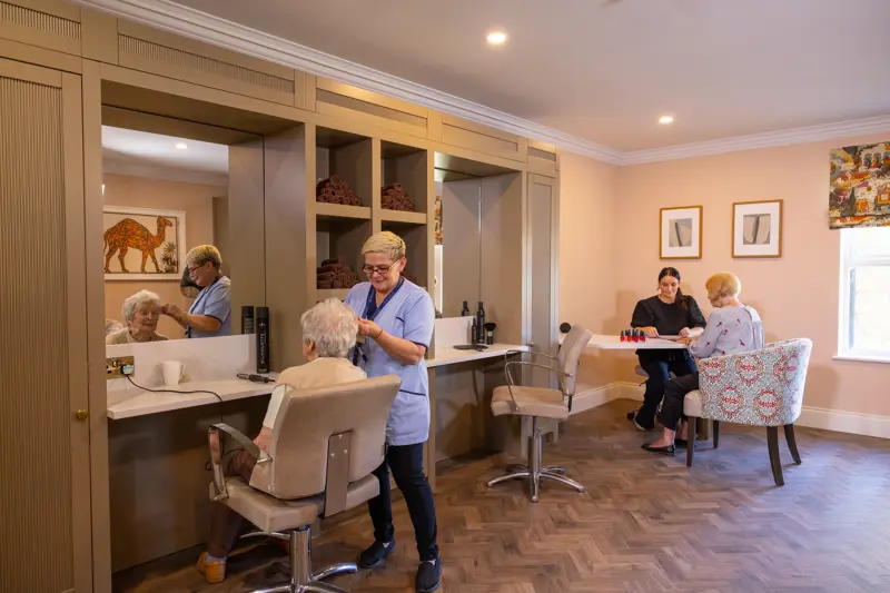 Our Cottingham Manor luxury care home includes facilities such as two in-house bars with a barista station, restaurant-standard dining rooms, a full beauty and hairdressing salon, a cinema, and outdoor terraces on each floor.