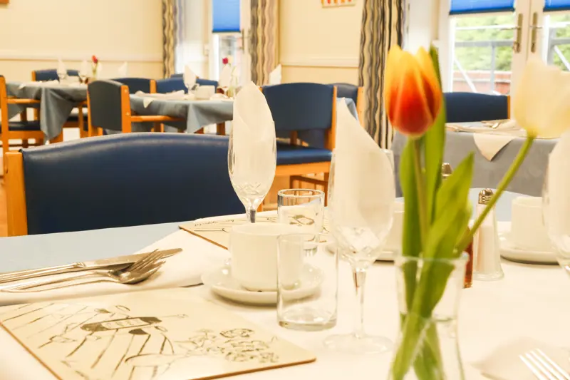 We have a dedicated Chapel, Hairdressing Salon, Activities room, large communal lounge, quiet room, large landscaped gardens and fully equipped accessible bathrooms in addition to en-suite shower rooms. We have 2 spacious dining rooms for those Residents who choose to dine with friends.
