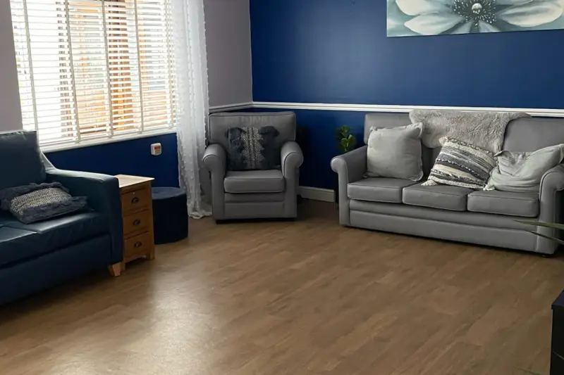 The home includes eight accessible rooms with en-suite bathrooms, fully wheelchair accessible areas, and provisions for ceiling tracked hoists and profiling beds if necessary. The people we support are encouraged to personalise their rooms. Other amenities include a dining room with patio doors to a garden, a large accessible kitchen, a bathroom, a spacious lounge, and an activity/therapy room.