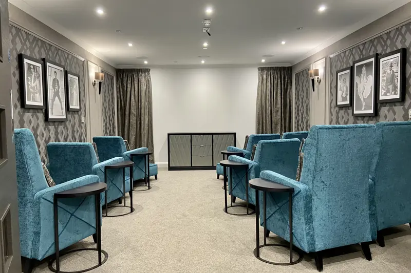 Meadows Park is a 66-bed residential care home dedicated to prioritising comfort and convenience for senior residents. Our modern, luxurious facilities are designed to accommodate those requiring dementia care and residential care services. We pay close attention to every detail, offering amenities such as ensuite wet-rooms, beautifully designed dining rooms and communal lounges, a hair and nail salon, and our very own home cinema.
