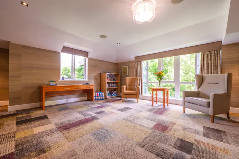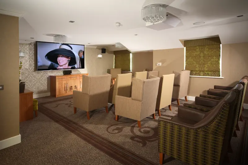 The home provides 41 en-suite single bedrooms across three floors, each equipped with specialist furniture, mobility aids where required, LCD televisions and free unlimited internet access. Residents can relax in their own rooms or spend time in a range of spacious communal lounges designed for socialising and activities.