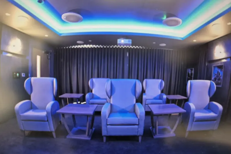 Our residents can immerse themselves in our fully fitted, 5 place, ultra HD cinema experience equipped with 2.6 metre screen, Sky TV, and state-of-the art integrated surround sound-system.
