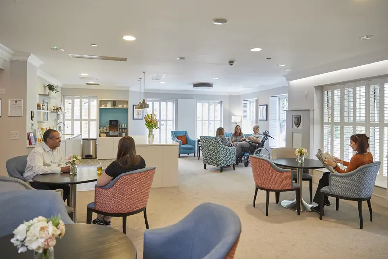 Our care team ensures that life for residents in our Surbiton home is comfortable and fulfilling. The Home is beautifully designed and informal, with spacious lounges where residents can enjoy activities and musical performances or find a cosy nook to read or chat with visitors. A visit to the hair salon or physiotherapy or joining friends in the café-bar for a drink all enhance residents' wellbeing. Each resident has a large, en-suite bed-sitting room for enjoying time alone or with family.
