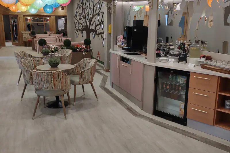 For the resident's comfort all of our bedrooms have wide adjustable beds, with a generous amount of high quality furniture, a reading spotlight above each bed, good spec television and a decent amount of concealed shelving space in each ensuite wet room.