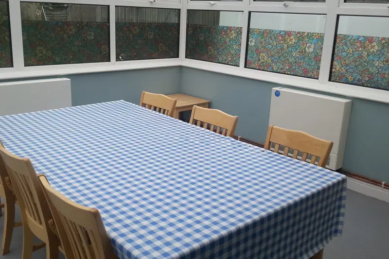 Our detached home benefits from a large kitchen, a spacious lounge designated for watching television, relaxation, and music sessions, and a conservatory that serves as a delightful dining space and an area for one-on-one activities. We also benefit from an expansive garden equipped with plenty of seating - great for the warmer months.