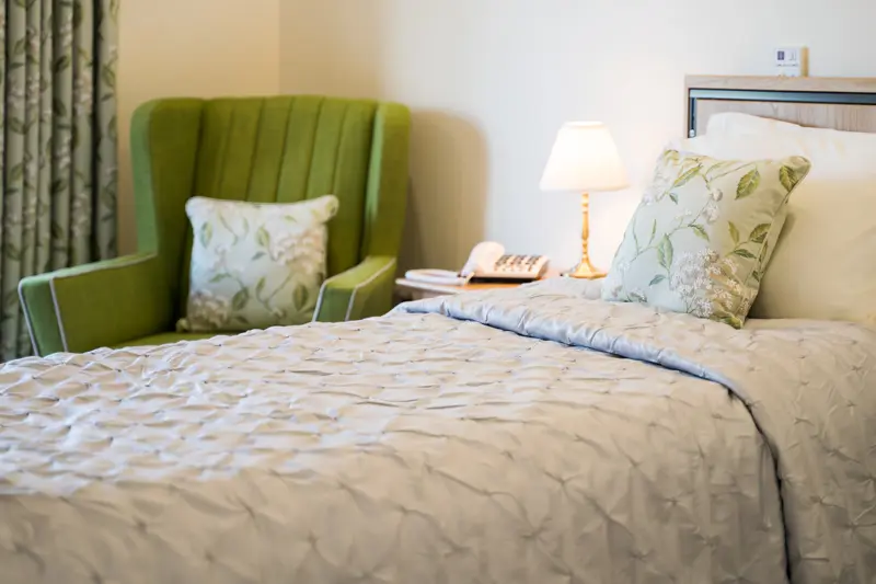 Our accommodation is unique. Individually decorated rooms fitted with luxury carpets and curtains, many of our rooms look out over the garden and have direct access to the garden via patio doors. All of our rooms are regularly refurbished and all include a profiling bed, specialist mattress, a touch (bed side) lamp, a large button telephone and a smart television.